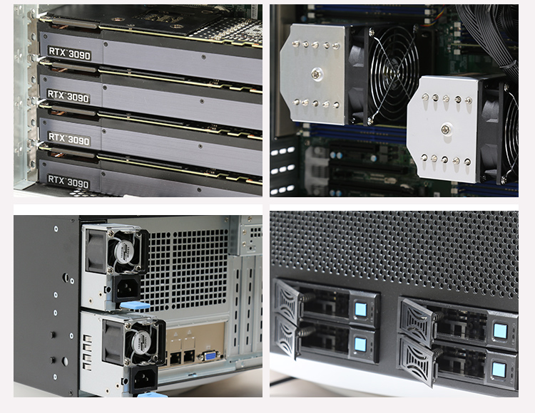 云轩GS4204 四路GPU服务器,NVIDIA Geforce RTX30系列选配,可搭载最大4TB的DDR4 REG-ECC 内存,液冷式的 GPU 散热与风冷式的 CPU 散热同时工作,两者均可以全负荷稳定运行,在获得极佳的散热效能的同时,为科研学习营造相对安静的环境。